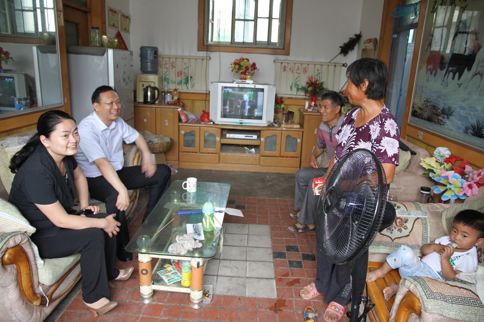 李合军先后到孔祥金、孔凡连、徐如东等老党员家中,向他们致以节日的问候,并送去电风扇,让老党员们在酷热的夏天感受到凉爽。